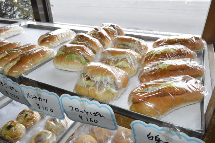 店内では焼き立ての美味しいパンをご用意しております。 商品名:大福もち(1個90円) 商品名:かりんとう饅頭(1個70円)
