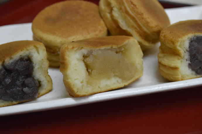 叶屋名物「たいこ焼き」昔ながらの手づくりで、皮はもっちり!あんは自家製!つぶあん、こしあん、そら豆あんの3種類からお求めいただけます。賞味期限が当日〜1日と短いですので、予約をしていただければ朝6時には作りたてをご用意することもできます。おみやげ等ご相談ください。