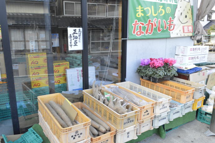 長いもの直送承ります。 店内には様々な野菜や果物を用意しております。 季節の野菜と果物を取り揃えております。