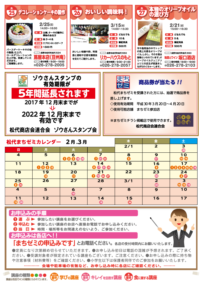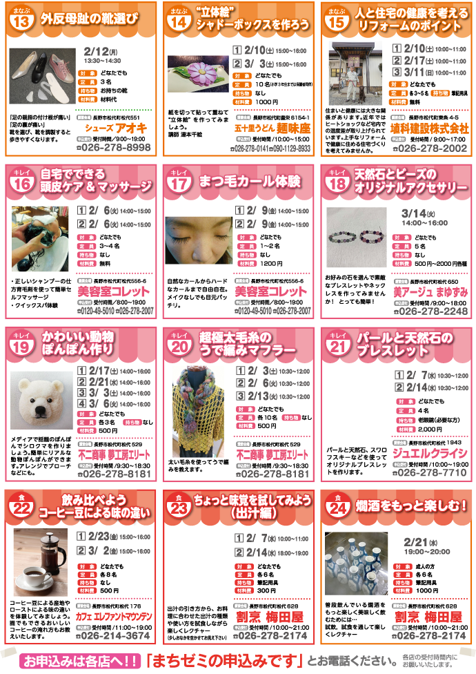平成30年2月3日〜3月15日に開催されるまちゼミの内容です。