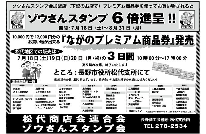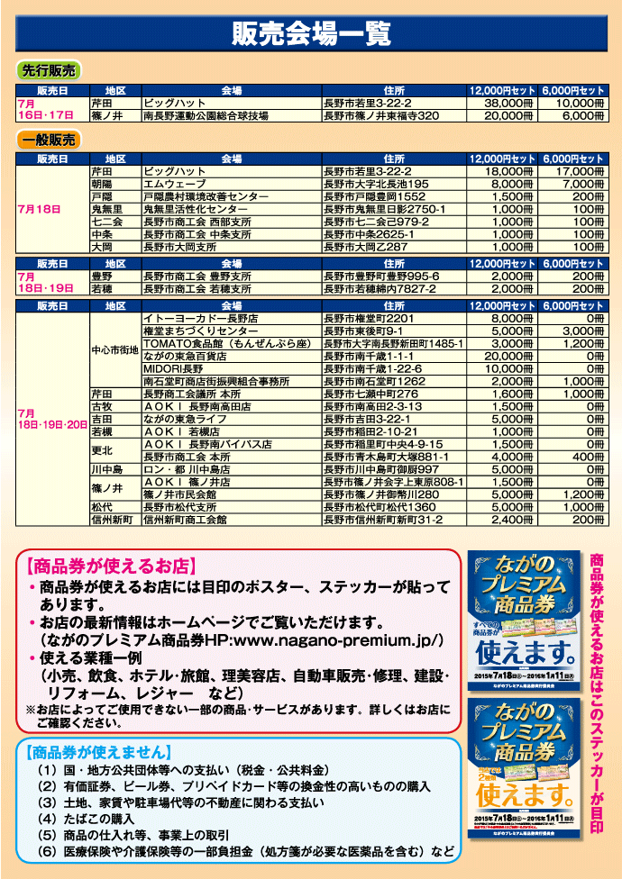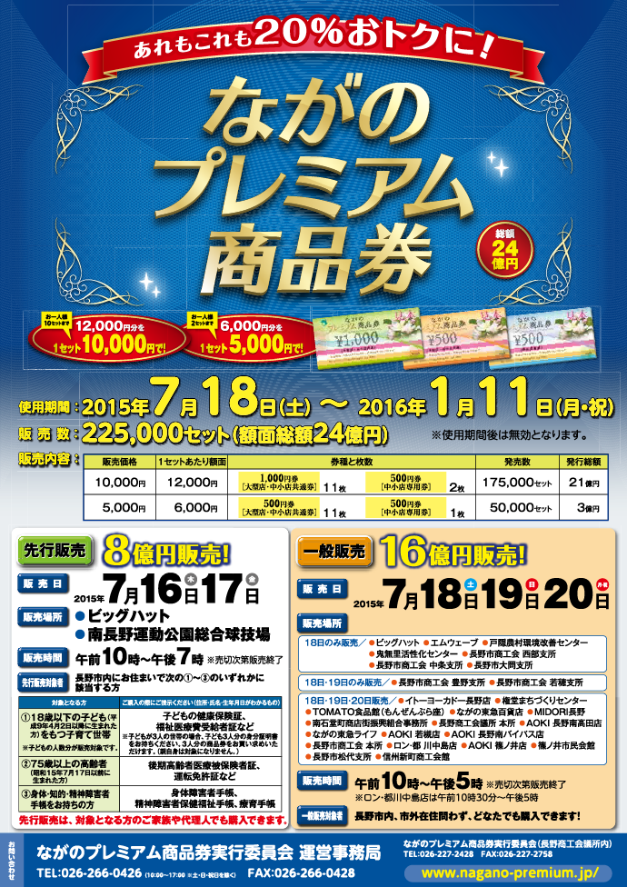 ■問い合せ:ながのプレミアム商品券実行員会 運営事務局(長野商工会議所内)026-266-0428