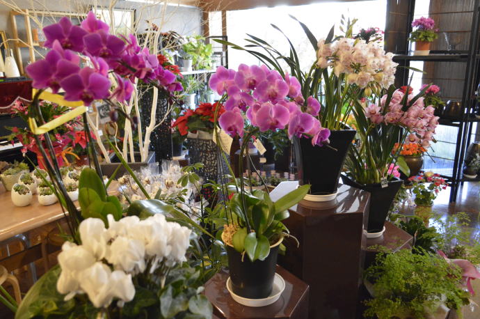 生花からブリザードフラワーまで様々な商品の販売を行っております。ゆったり広い店内ではピアノの生演奏を聴きながら、季節の花やさまざまなプランツをお選びいただけます。また、全国各地への配達も承っております。予算に応じたお花選びもお任せください。まずはお気軽にご来店またはお問い合わせお待ちしております。