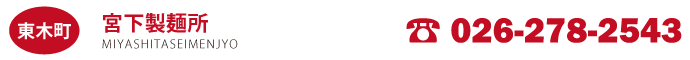 取扱品:うどん・そば・中華めん・つゆ など 住所:長野市松代町松代555 営業時間:10:30〜15:00 休業日:火・水曜日 電話:026-278-2543 |